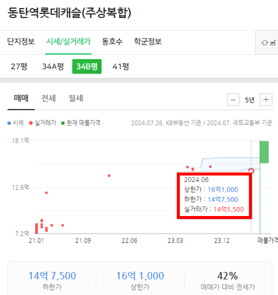 무순위 84형 분양가 4.8억원 기준 최근 실거래가와 약 10억 차이나는 것을 확인할 수 있습니다.